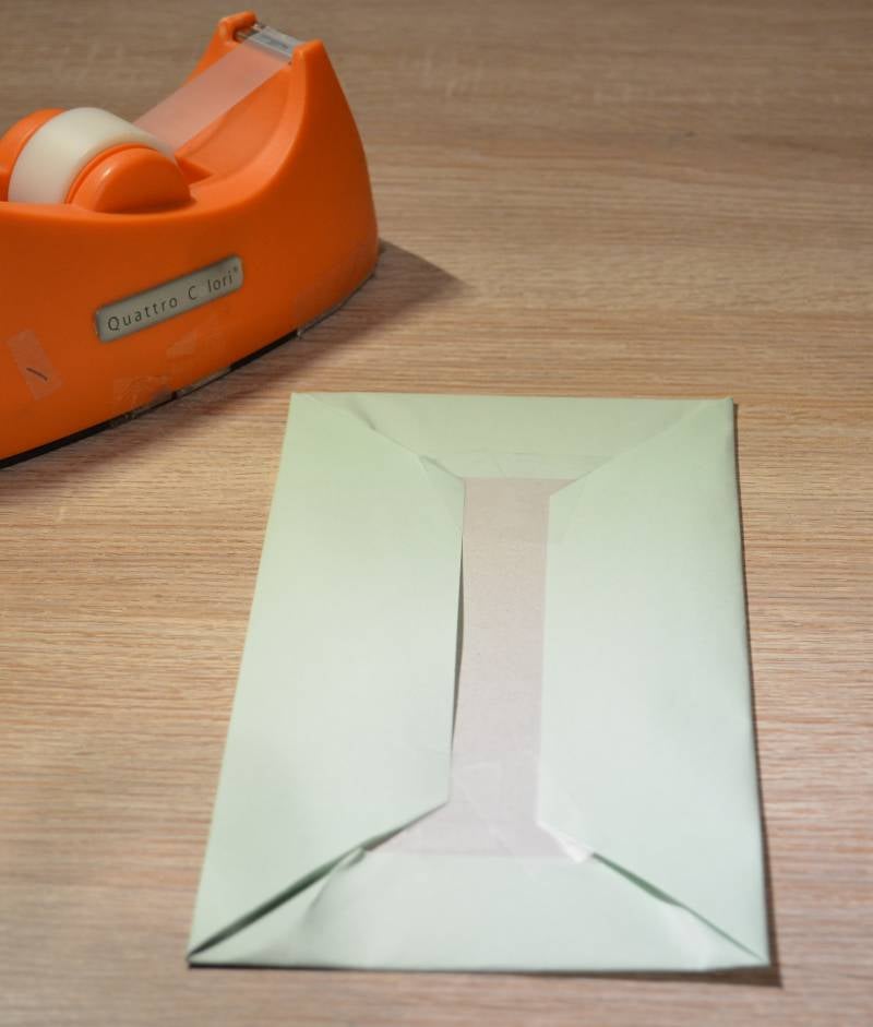 Stap2: Pak het karton in met het gekleurd papier. Zorg dat er zeker één kant volledig is ingepakt.