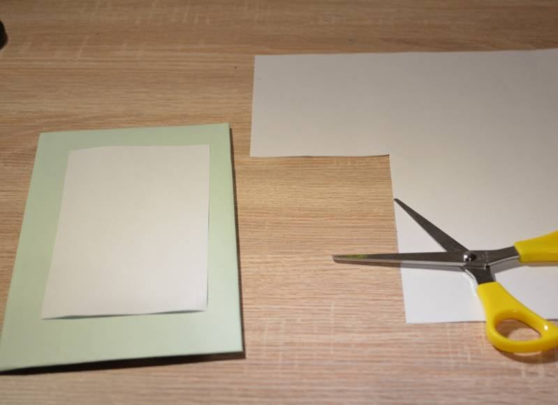 Stap3: Knip uit het witte blad een rechthoek die kleiner is dan het karton.