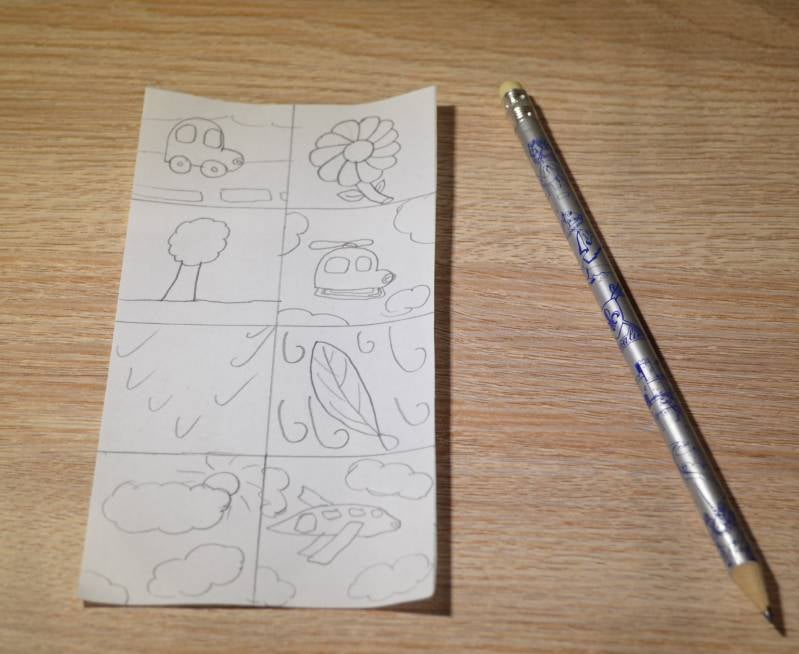 Stap5: Met je potlood teken je de dingen die je onderweg zou kunnen tegenkomen. In elk vakje teken je iets verschillend.