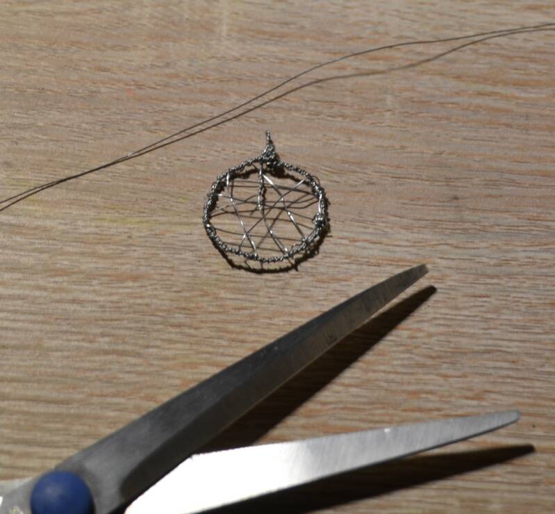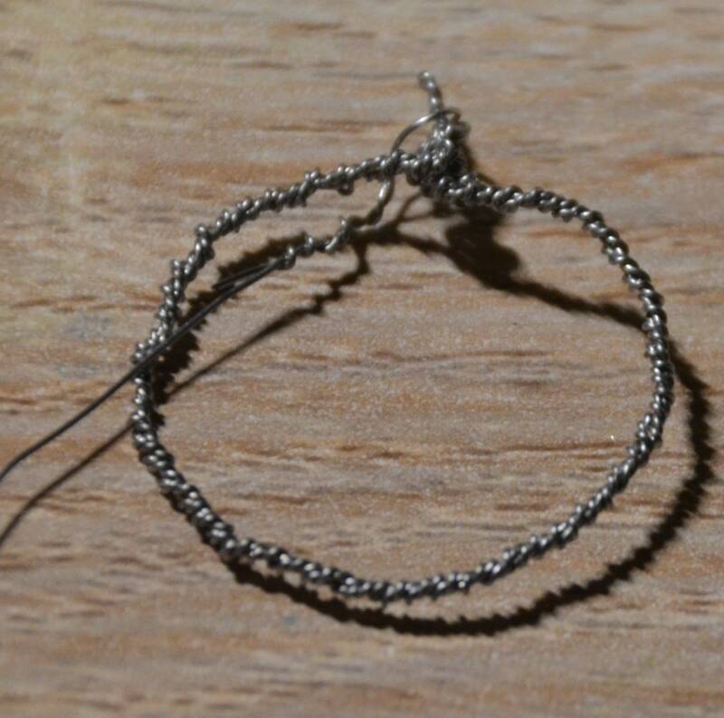 Stap5: Herhaal stap 2, 3 en 4 met je gedraaide ijzerdraad. Let wel op dat je in het midden een opening laat als lus.