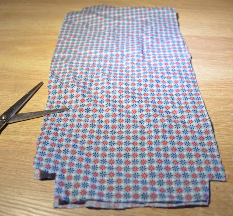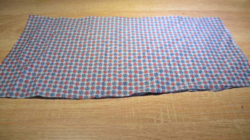 Stap1: Knip van de stof twee dezelfde rechthoeken en leg ze gelijk op elkaar.