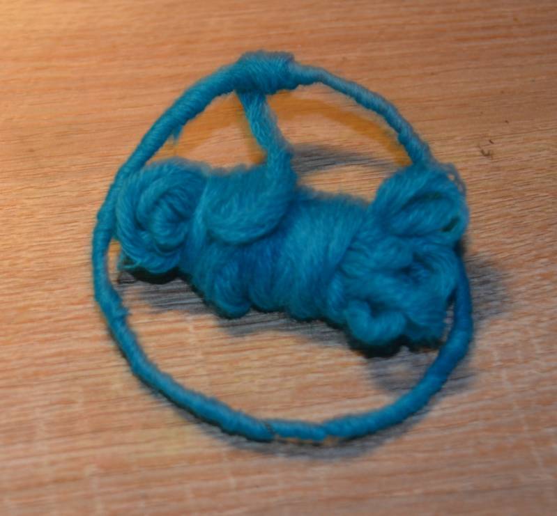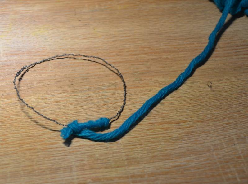 Stap7: Maak de wol vast met een knoopje aan het rondje.