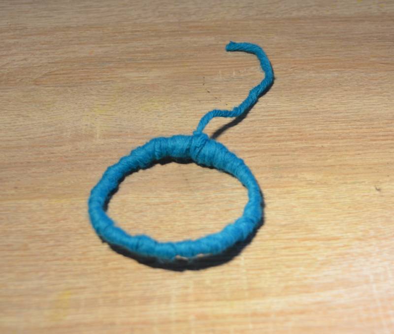 Stap8: Draai met de wol rond het rondje.