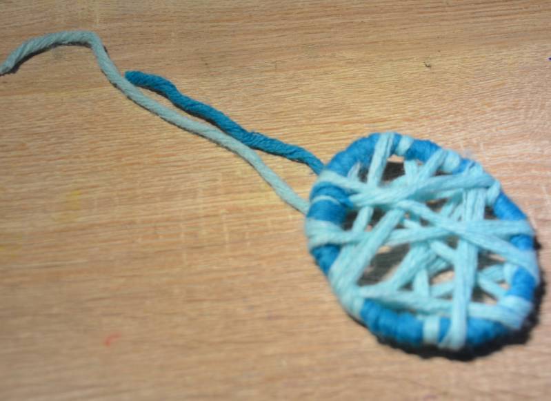 Stap13: Maak met de twee uiteindes van de draden wol een lus.