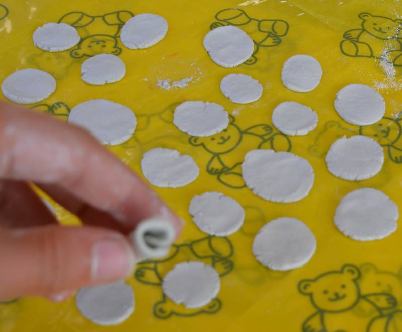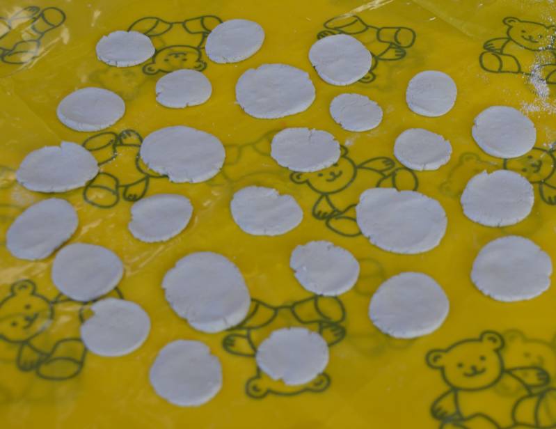 Stap3: Druk de bolletjes plat zodat je allemaal kleine schijfjes krijgt.