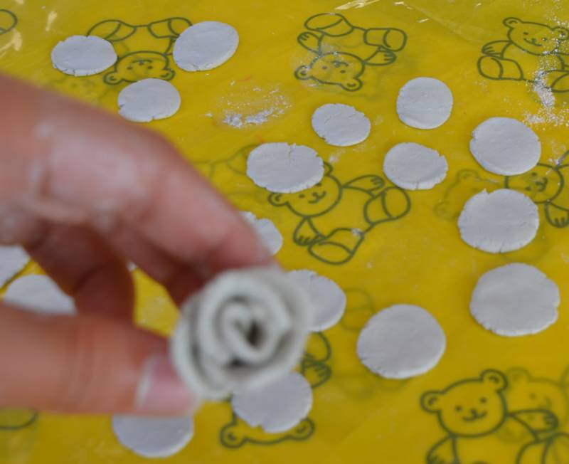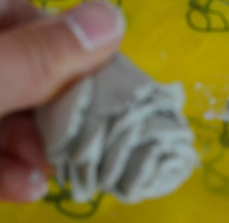 Stap7: Neem de overschot van de klei onderaan de roos eraf.