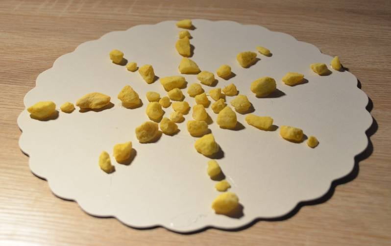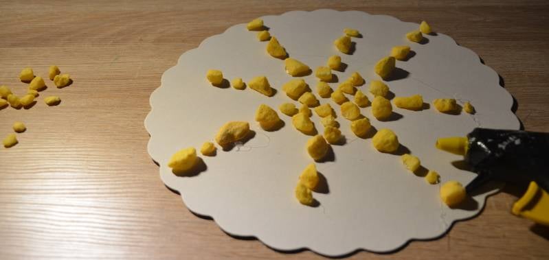 Stap1: Leg de gekleurde stenen op het karton zoals je je vorm wilt.