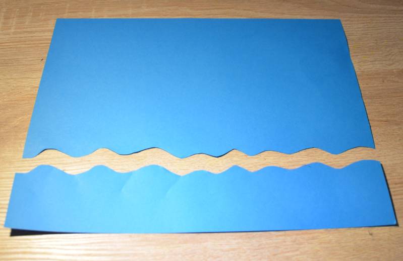 Stap2: Knip van het blauwe blad in de lengte een golfpatroon.