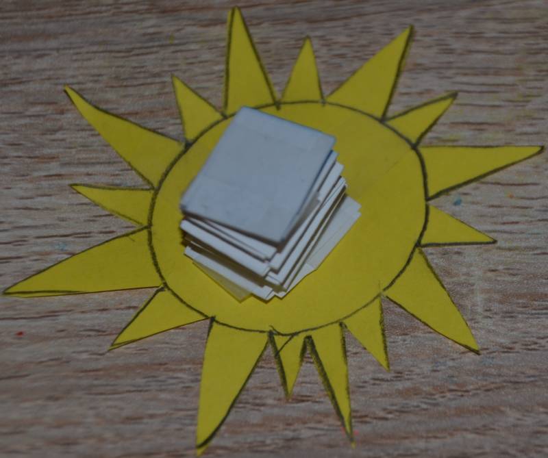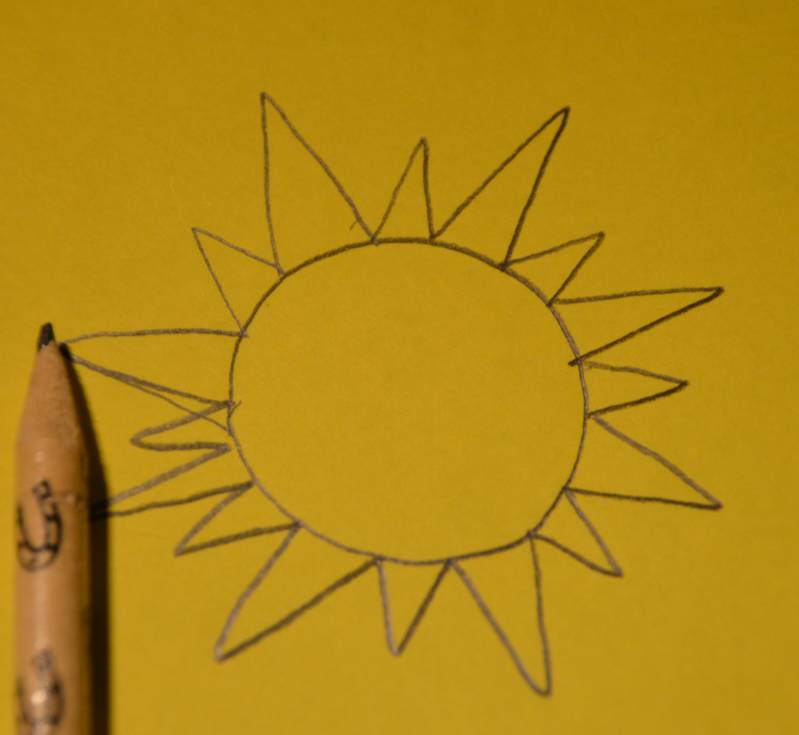 Stap16: Op het gele papier teken je met potlood een zon.
