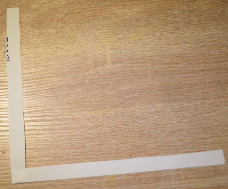 Stap7: Plak de twee stroken papier op elkaar in een rechte hoek.