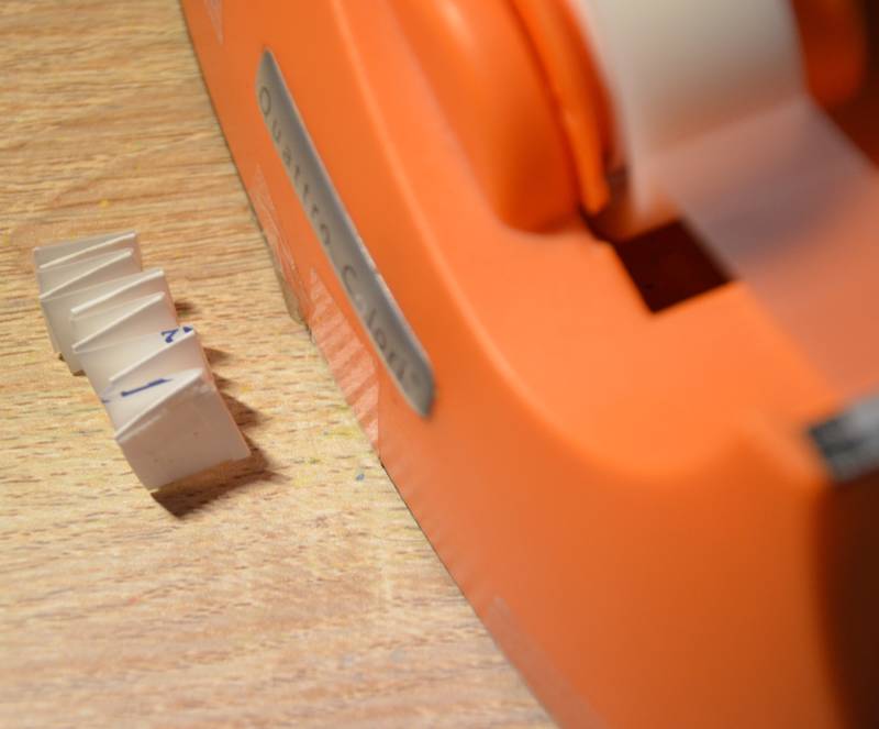 Stap21: Neem een stukje plakband en rol het stukje op met de kant die plakt naar buiten.