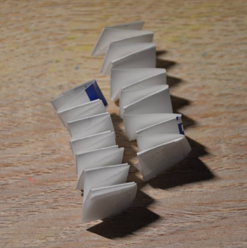 Stap11: Met plakband plak je de uiteindes van de stroken op elkaar zodat je een soort van veer krijgt.