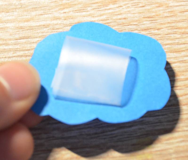 Stap22: Plak het rolletje plakband op de achterkant van de blauwe wolk.