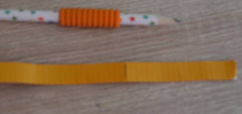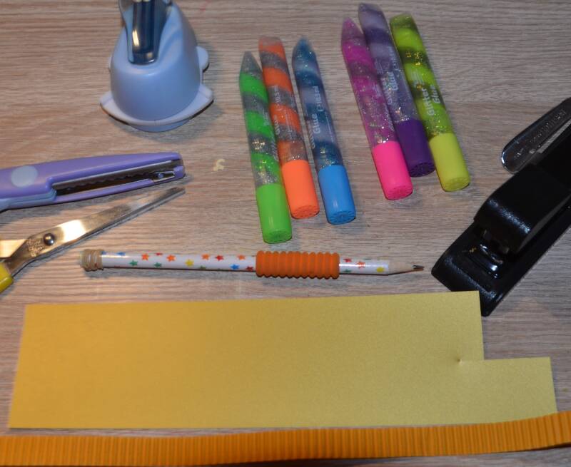 Stap4: Niet nu één van de twee uiteindes van de lange strook karton aan één van de kanten van de kroon.