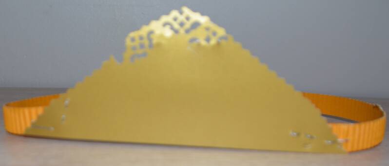 Stap1: Met een potlood teken je op de achterkant van het goud karton een kroon.