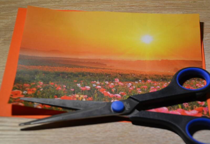 Stap1: Knip uit het gekleurd papier een rechthoek die een klein beetje groter is dan je foto.