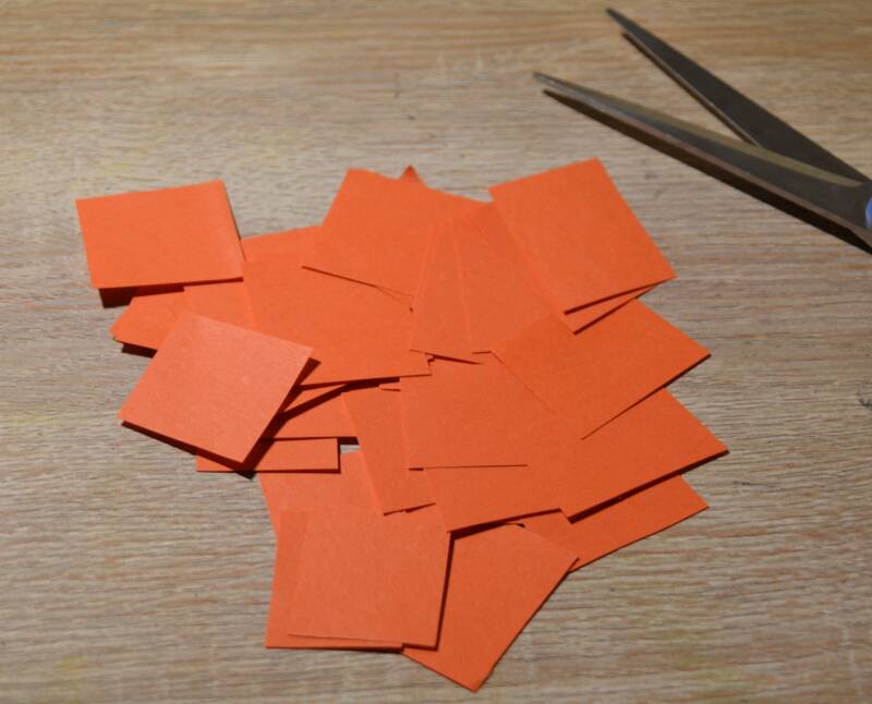Stap3: Knip uit het gekleurd papier wat rechthoekjes, rondjes of ovaaltjes.