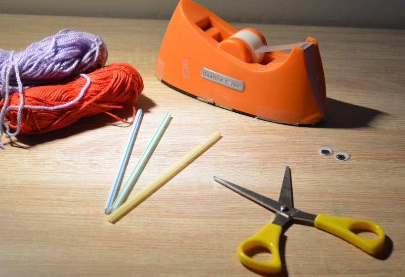 Stap2: Haal door elk rietje twee draden.