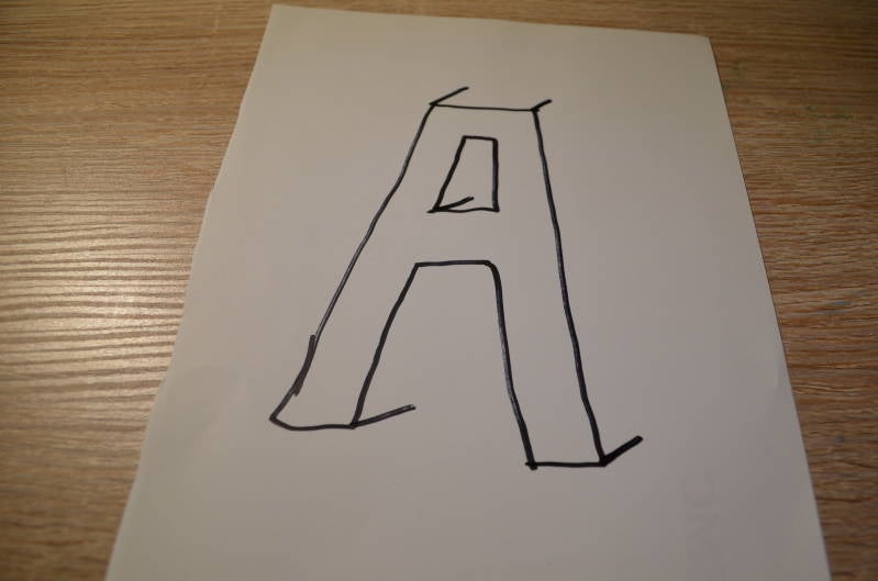 Stap1: Teken een letter met een dubbele lijn. Ik doe het voor met de letter A.