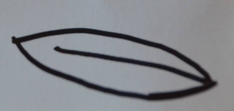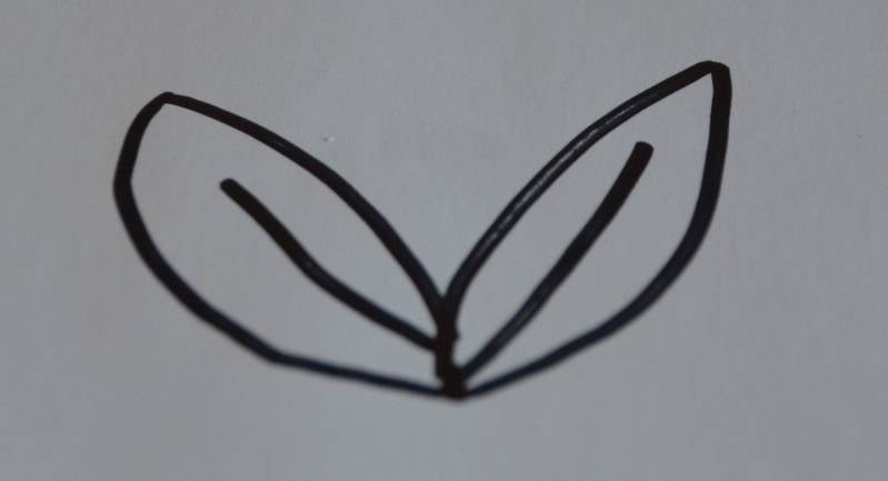 Stap2: Teken er nog een boogje aan vast zodat je de vorm van een blaadje krijgt.