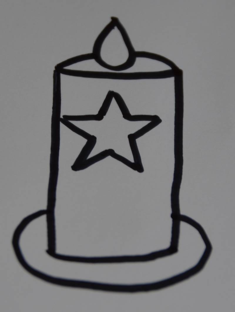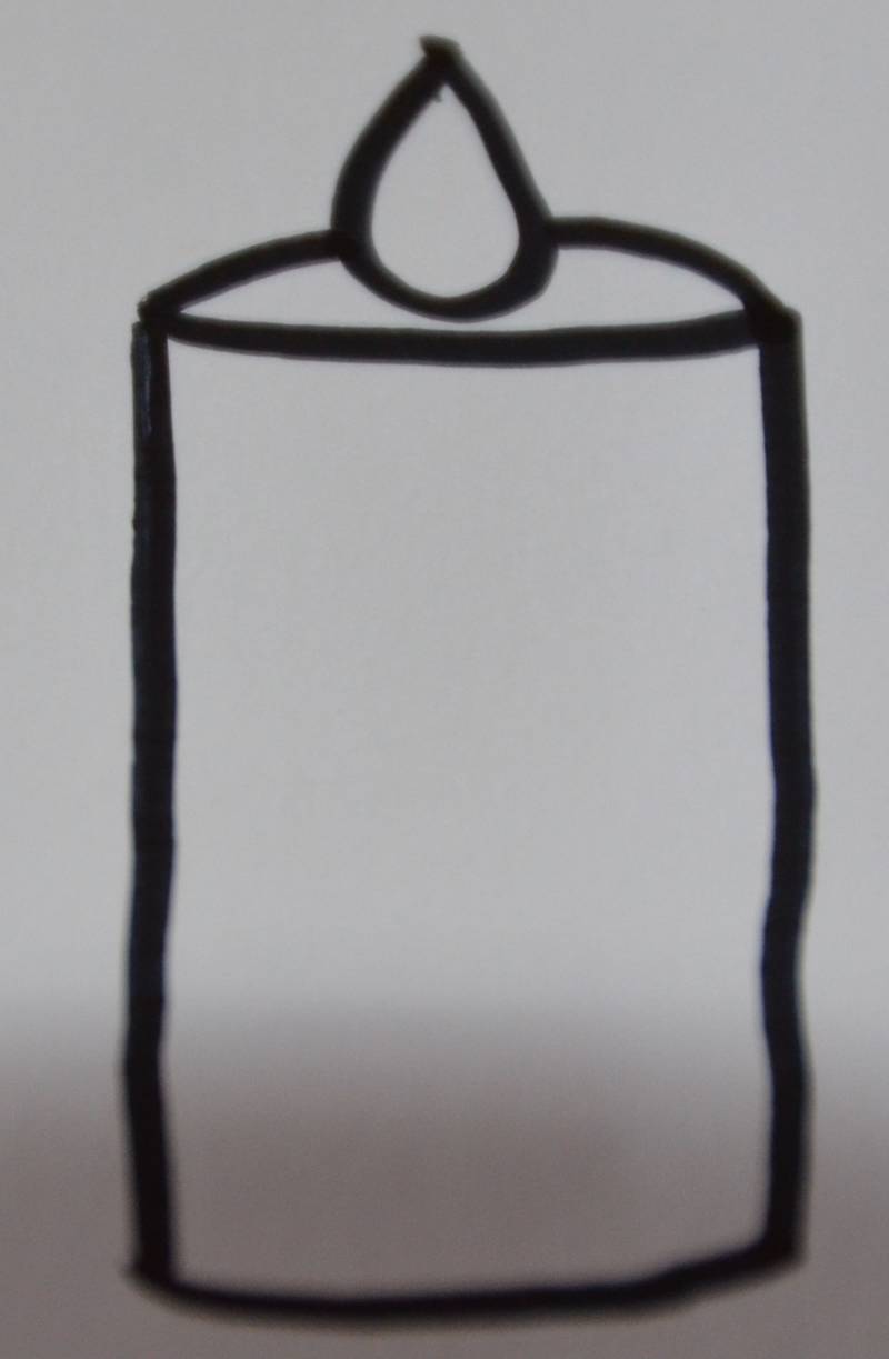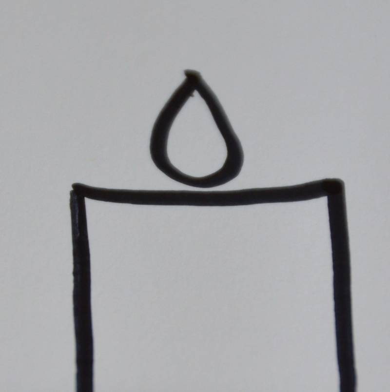 Stap4: Teken nu langs elke kant van de kaars een boogje tot tegen de druppel.