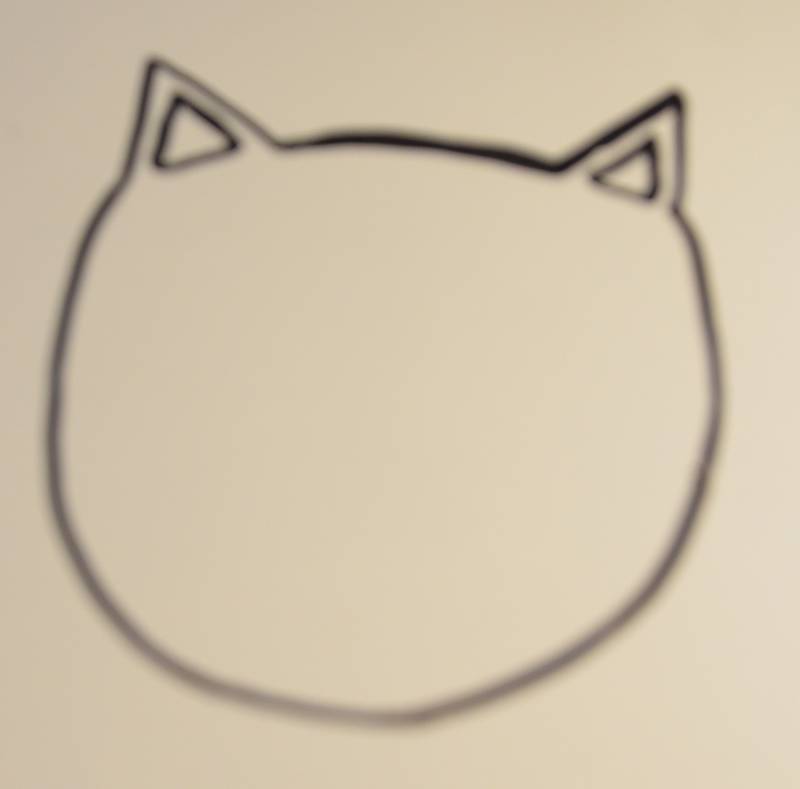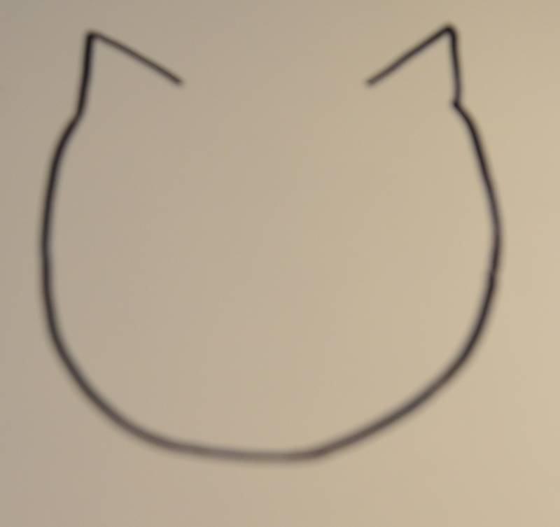 Stap16: Aan de boog tussen de twee oortjes teken je lange, smalle boogjes naar beneden.