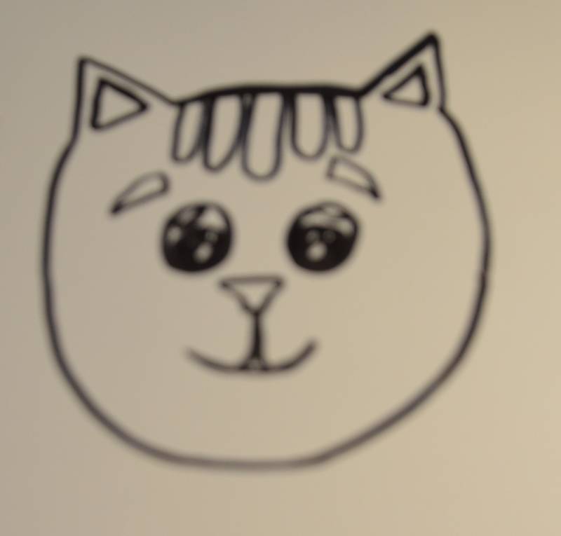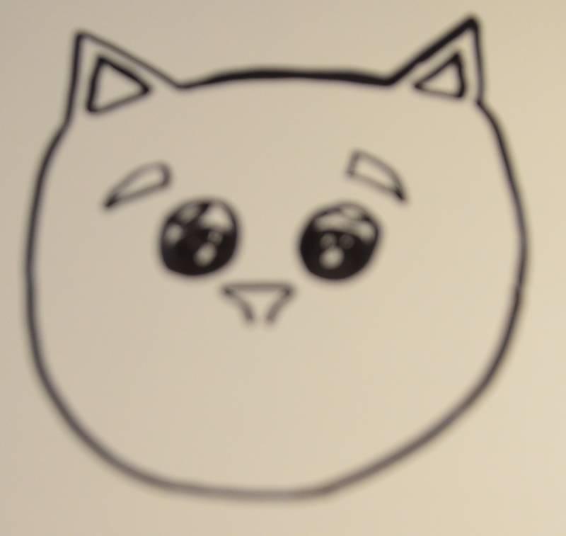 Stap17: Om je katje wat schattiger te maken. Teken schuin onder de ogen langs de buitenkant een paar stipjes.