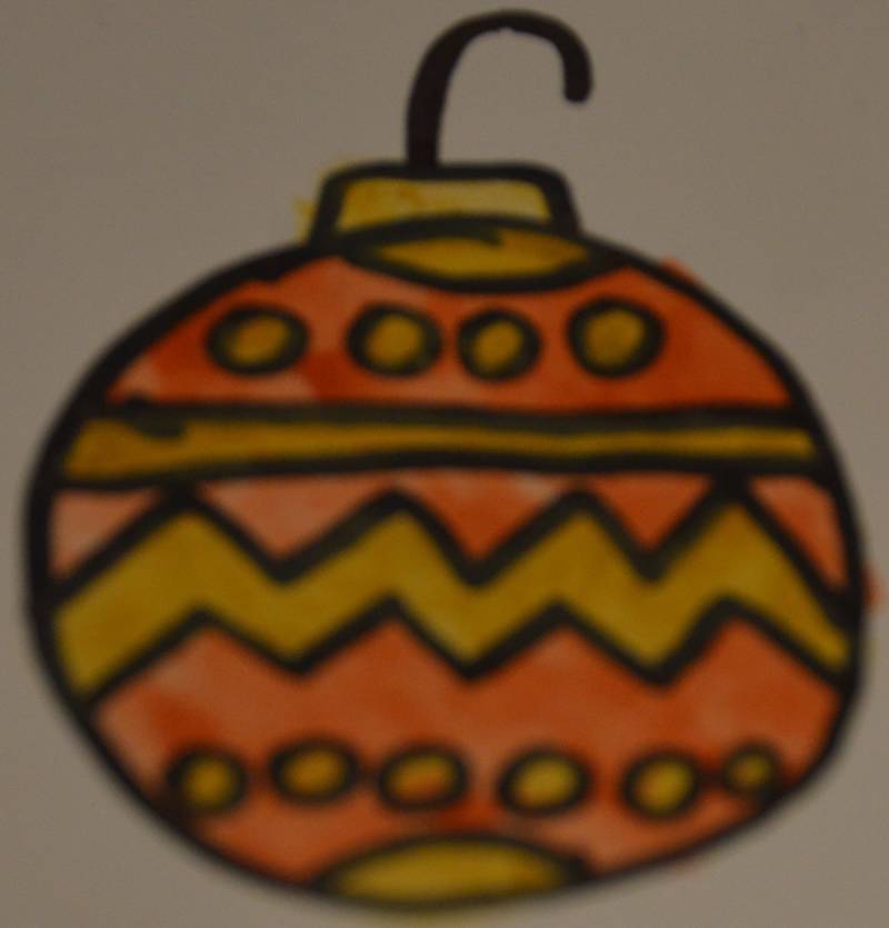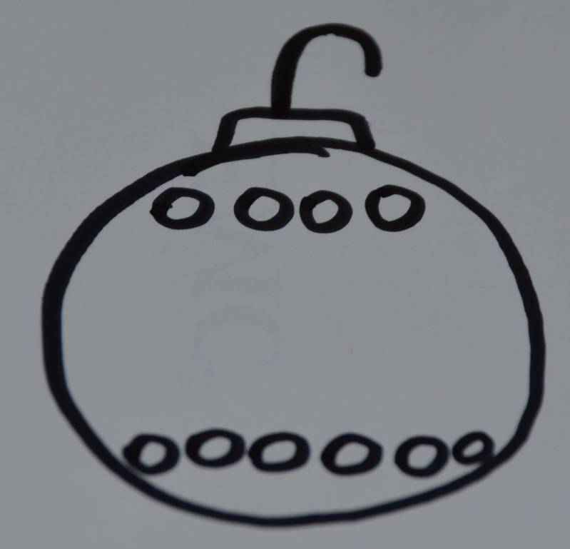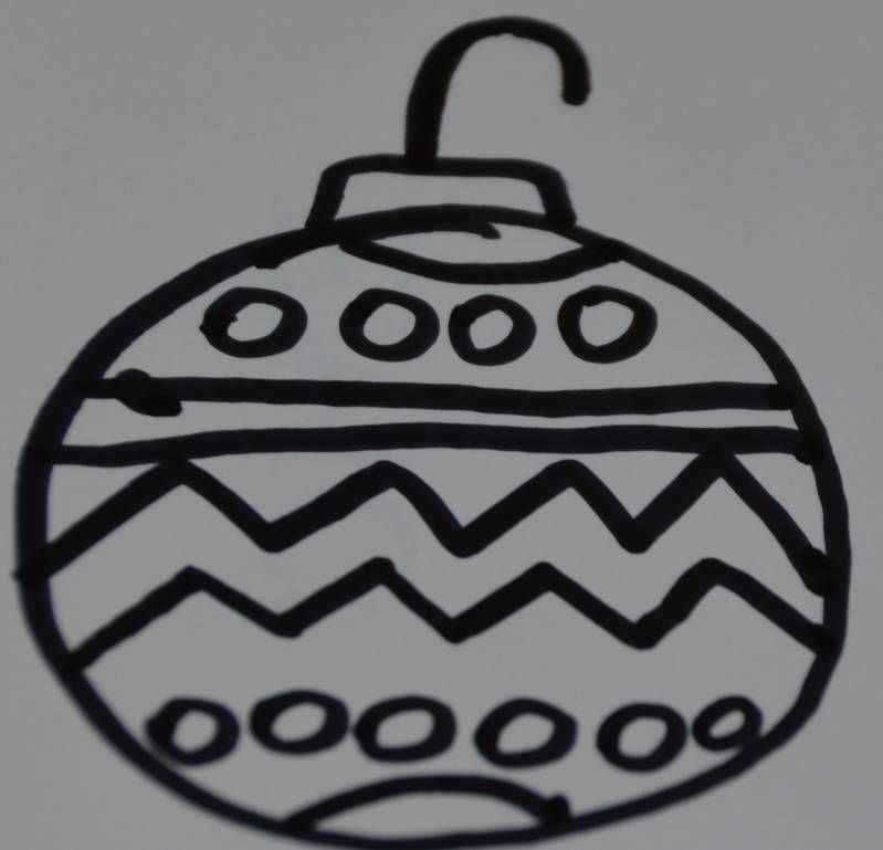 Stap5: Ook kan je in de cirkel wat dubbele lijnen of boogjes tekenen. Je kan helemaal zelf kiezen wat je in je kerstbal tekent.