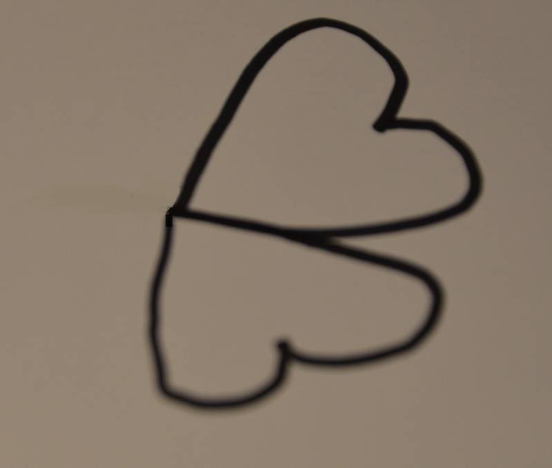 Stap2: Aan het eerste hartje teken je een tweede hart. Dit hart staat schuin naar onder.