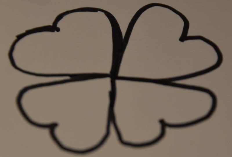 Stap3: Teken er nog twee hartjes aan zodat je de 4 blaadjes van je klavertje krijgt.