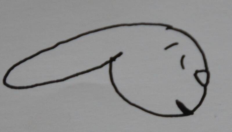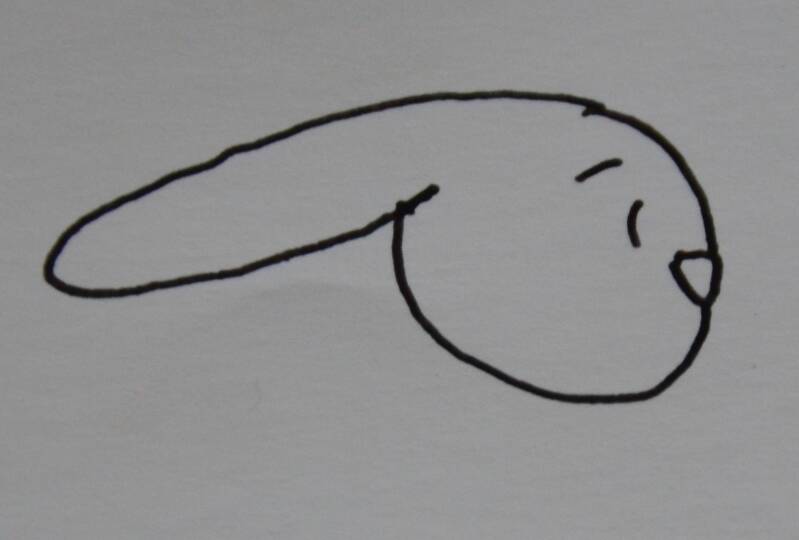 Stap4: Nu teken je aan de driehoek een boog tot aan het oor van het konijn.