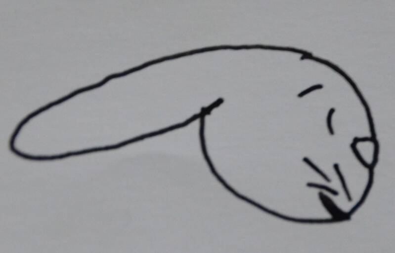 Stap8: Nu teken je onder het hoofdje een lange, smalle boog die een beetje schuin naar onder staat.