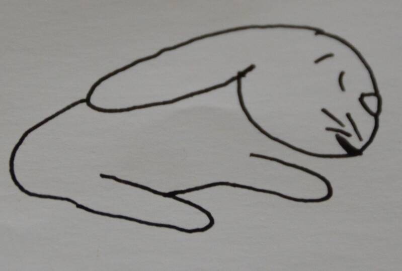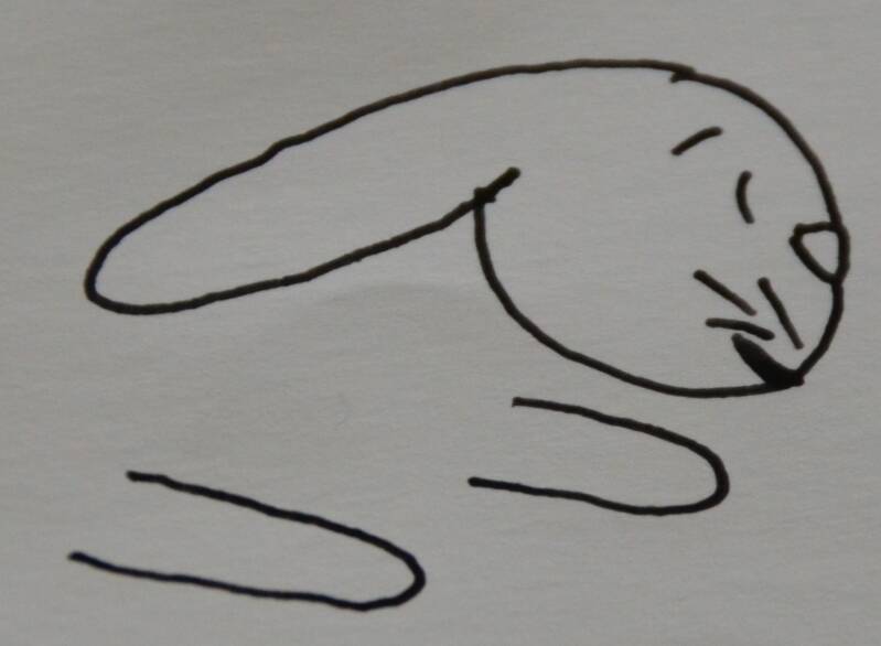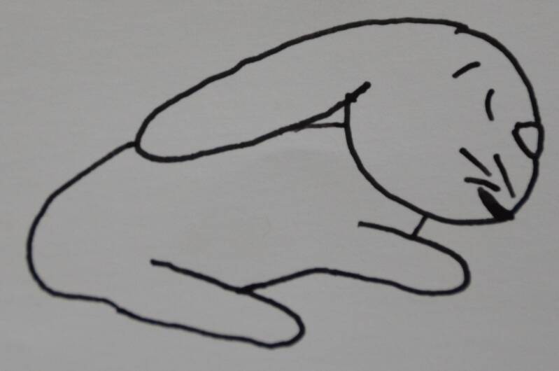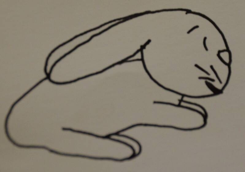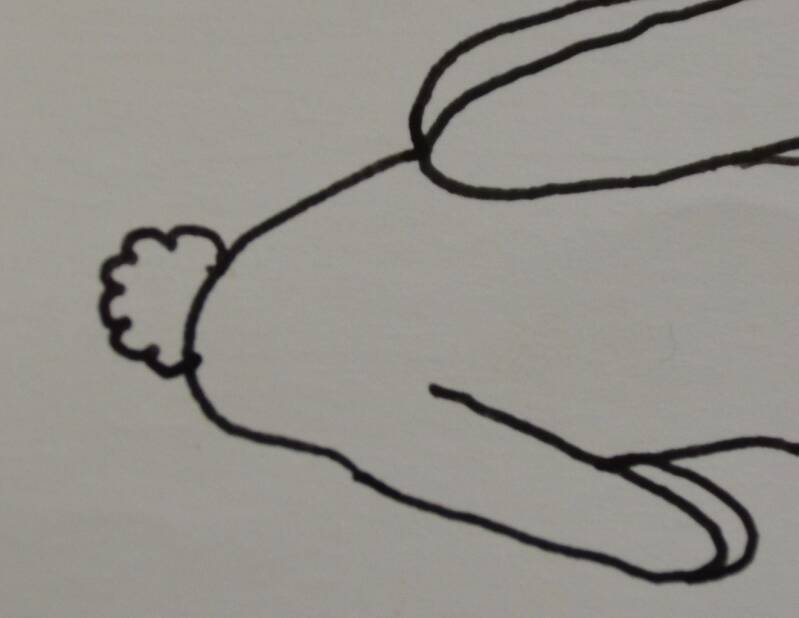 Stap14: Aan het konijntje teken je een klein wolkje als staart.