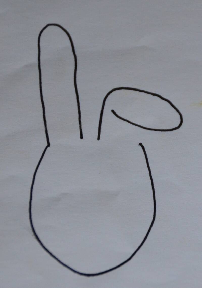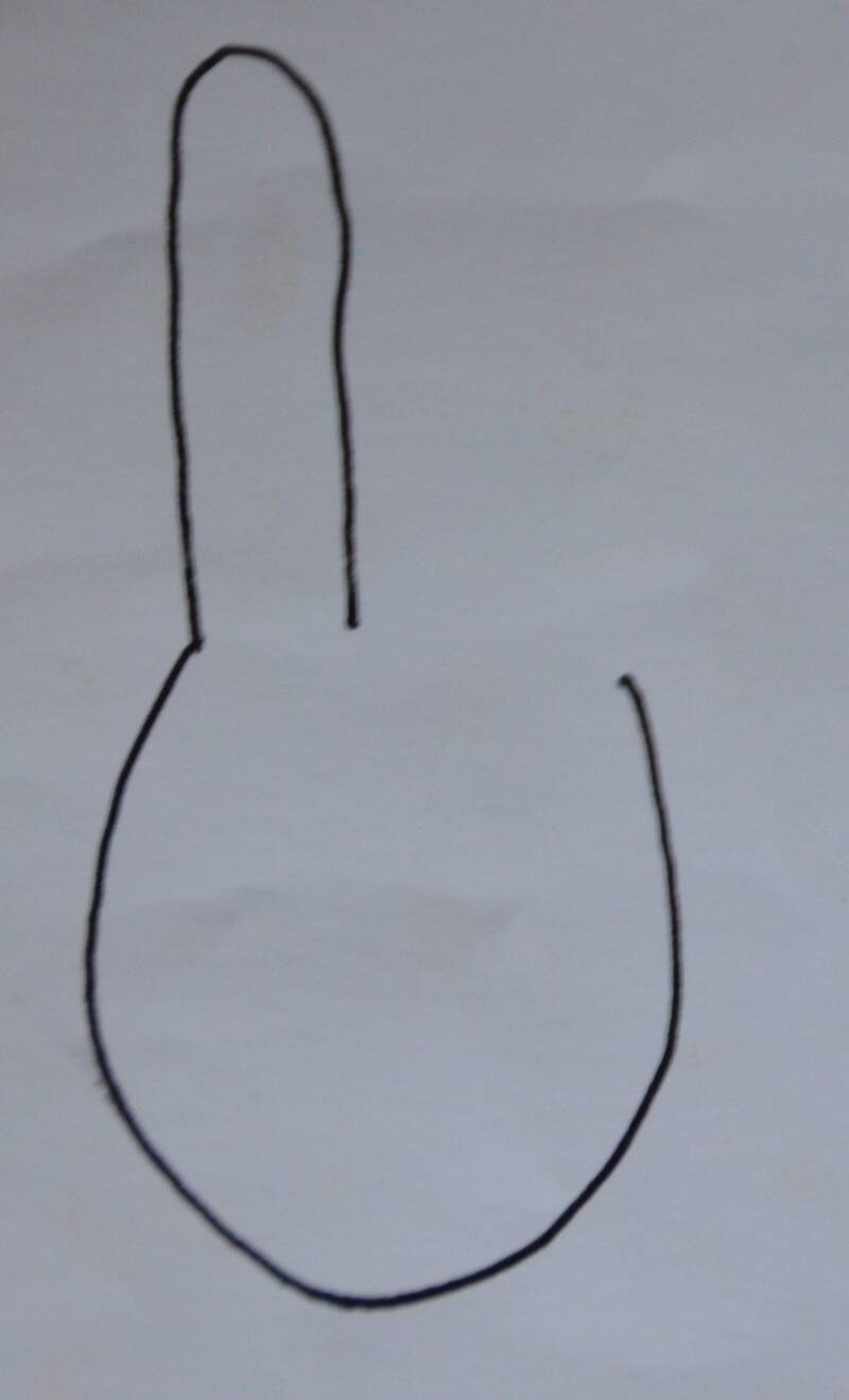 Stap3: Rechts van de boog teken je een hoekige en uitgerekte haak.