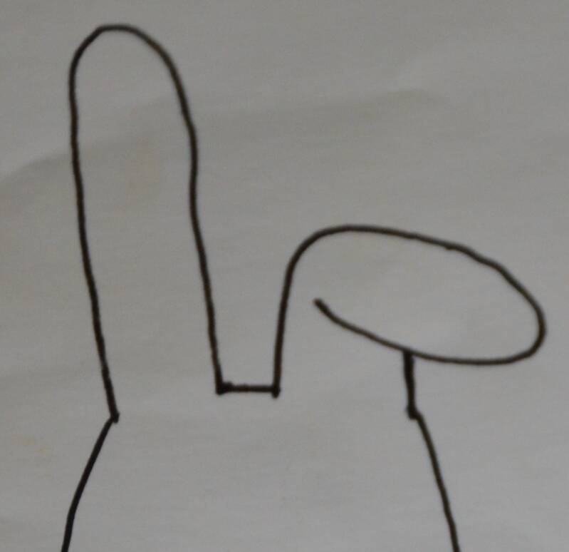 Stap5: De haak verbind je met de boog door er een klein streepje tussen te tekenen.