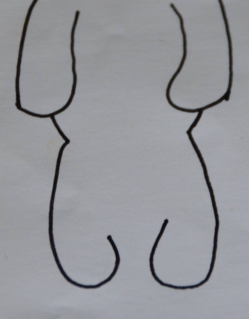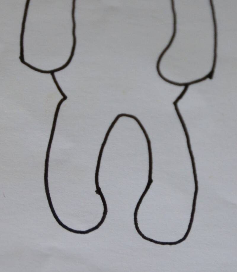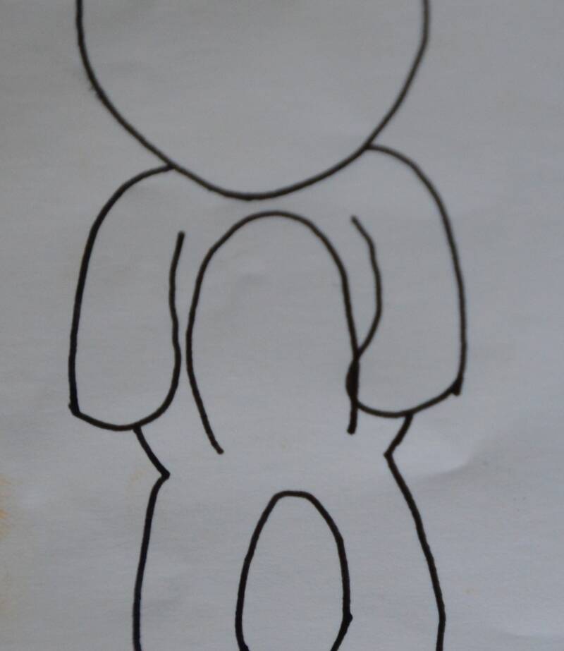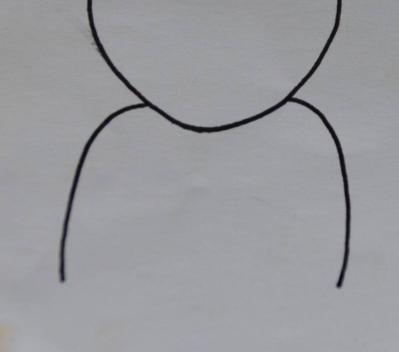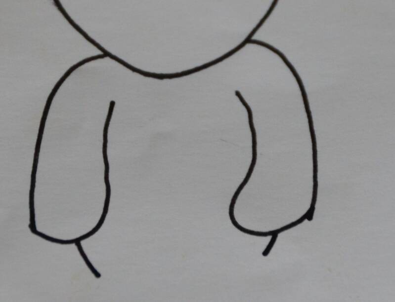 Stap9: Aan het hoofdje teken je twee bogen die naar onder wijzen.