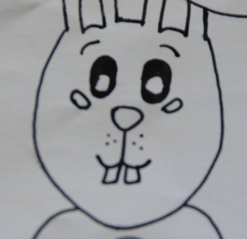 Stap16: Teken nu twee ogen in het hoofdje met daarboven 2 wenkbrauwen.