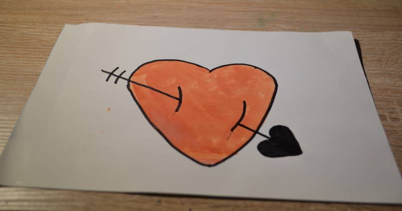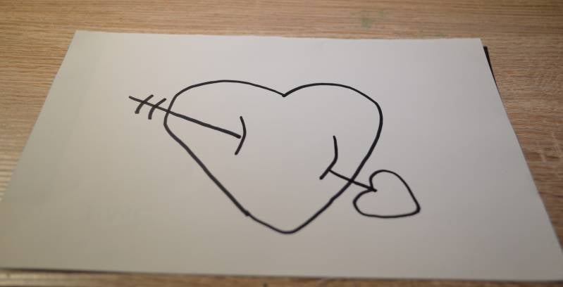Stap5: Teken aan de onderkant van de lijn een hartje. Dit is de punt van de pijl.