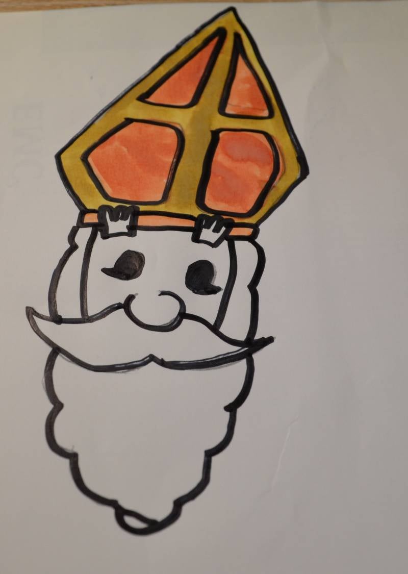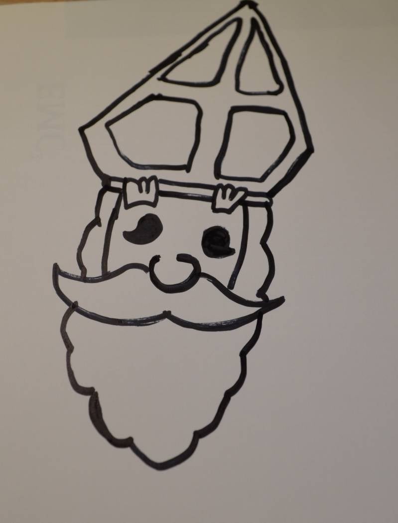 Stap10: Door boogjes te tekenen van de mijter tot aan de snor ontstaat het haar van de Sint.