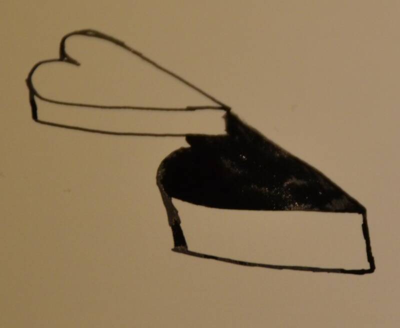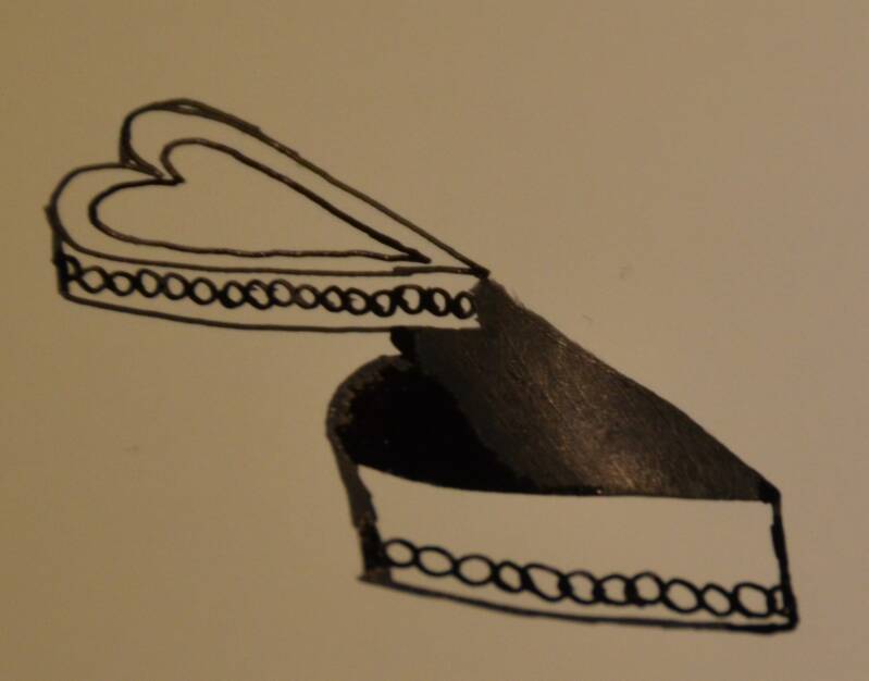 Stap6: Kleur het onderste hartje in met zwart. Let op dat je enkel het hartje zelf inkleurt.