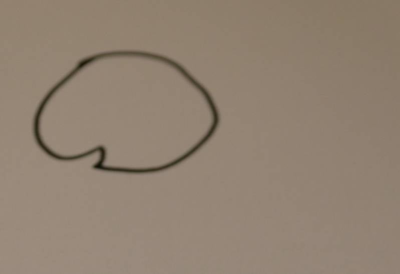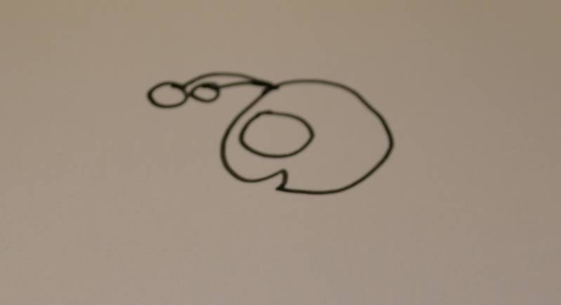 Stap1: Teken het hoofdje van de bij. Dit doe je door een rondje te tekenen en er een hap uit te laten voor de mond.