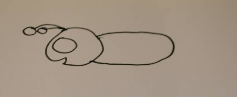Stap4: Voor het lijfje teken je een soort ovaal aan het hoofdje vast.