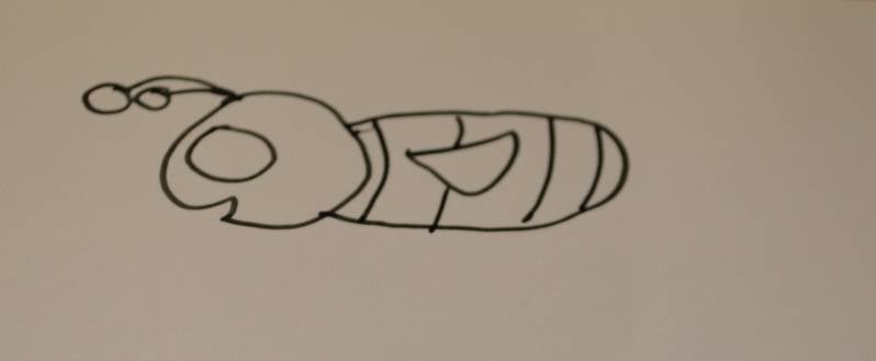 Stap6: Teken nu streepjes in het lijfje van de wesp.