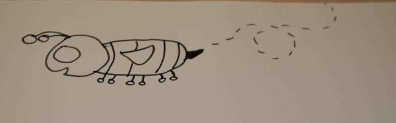 Stap10: Om de wesp een vliegend effect te geven teken je een stippellijn achter de wesp aan en je bent klaar.