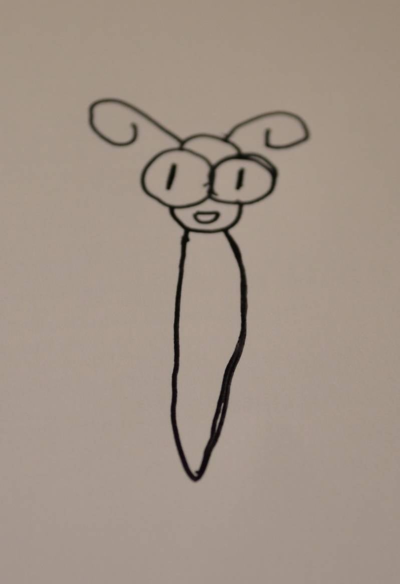 Stap6: Onder aan het hoofdje vast teken je een langwerpig lijfje.