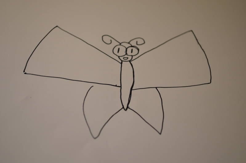 Stap4: In het hoofd van de vlinder teken je een klein mondje.
