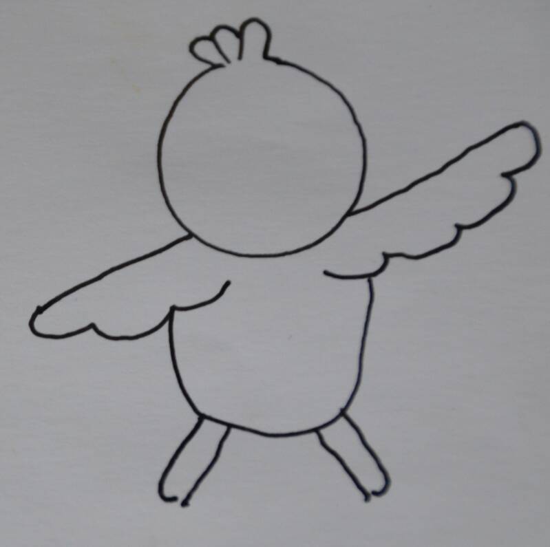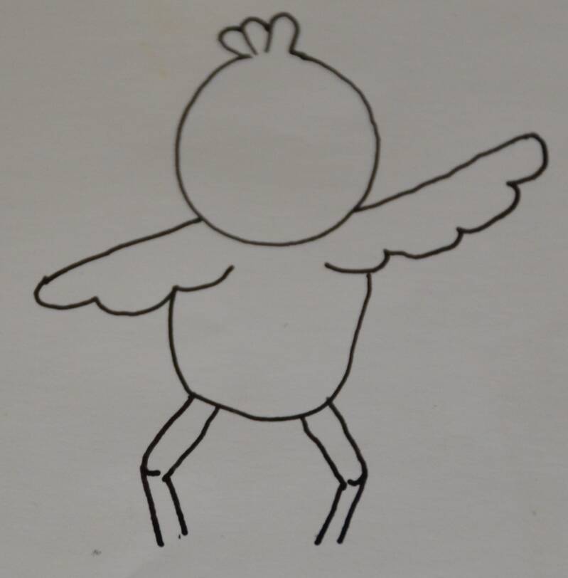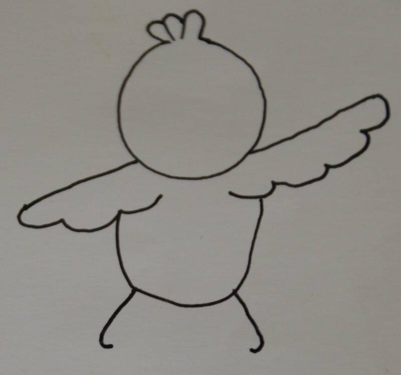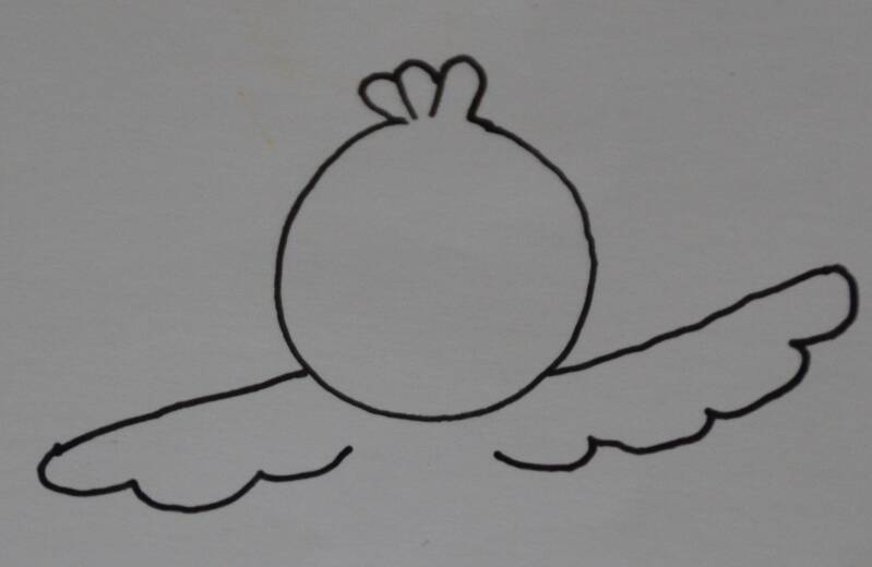 Stap5: De vleugels verbind je door een rond bakje te tekenen.