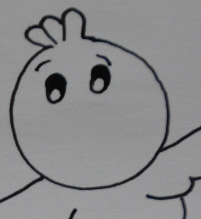 Stap12: In het hoofdje teken je nu 2 ogen met daarboven 2 wenkbrauwen.