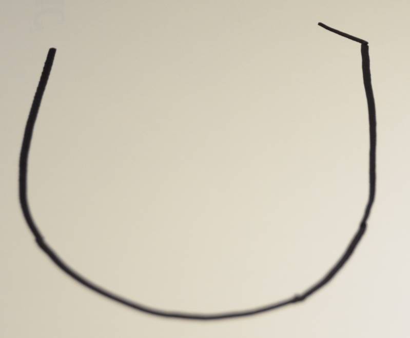 Stap2: Aan het rechter uiteinde van je boogje vast teken je een schuin streepje naar boven. Zorg dat je streepje schuin naar binnen staat zoals op de foto.
