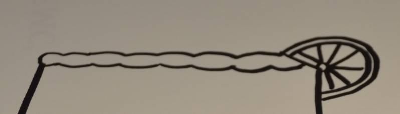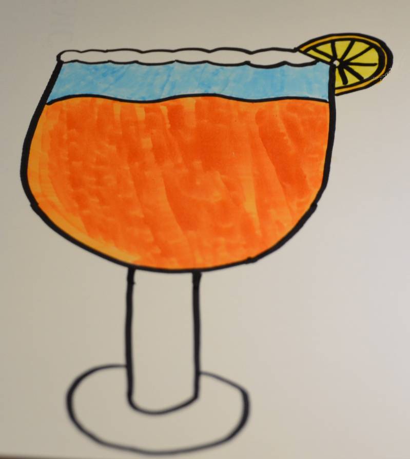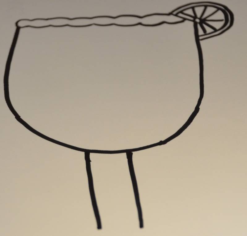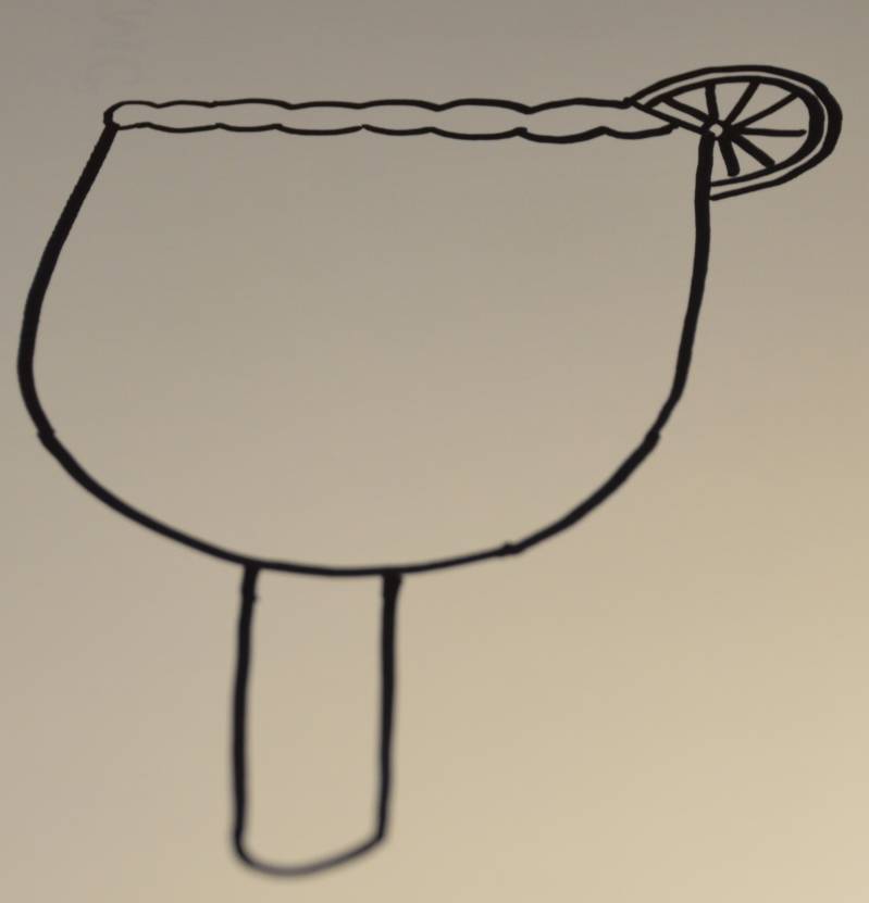 Stap5: Teken aan het schuine lijntje vast een soort smalle uitgerekte wolk die zo de bovenkant van het glas maakt.